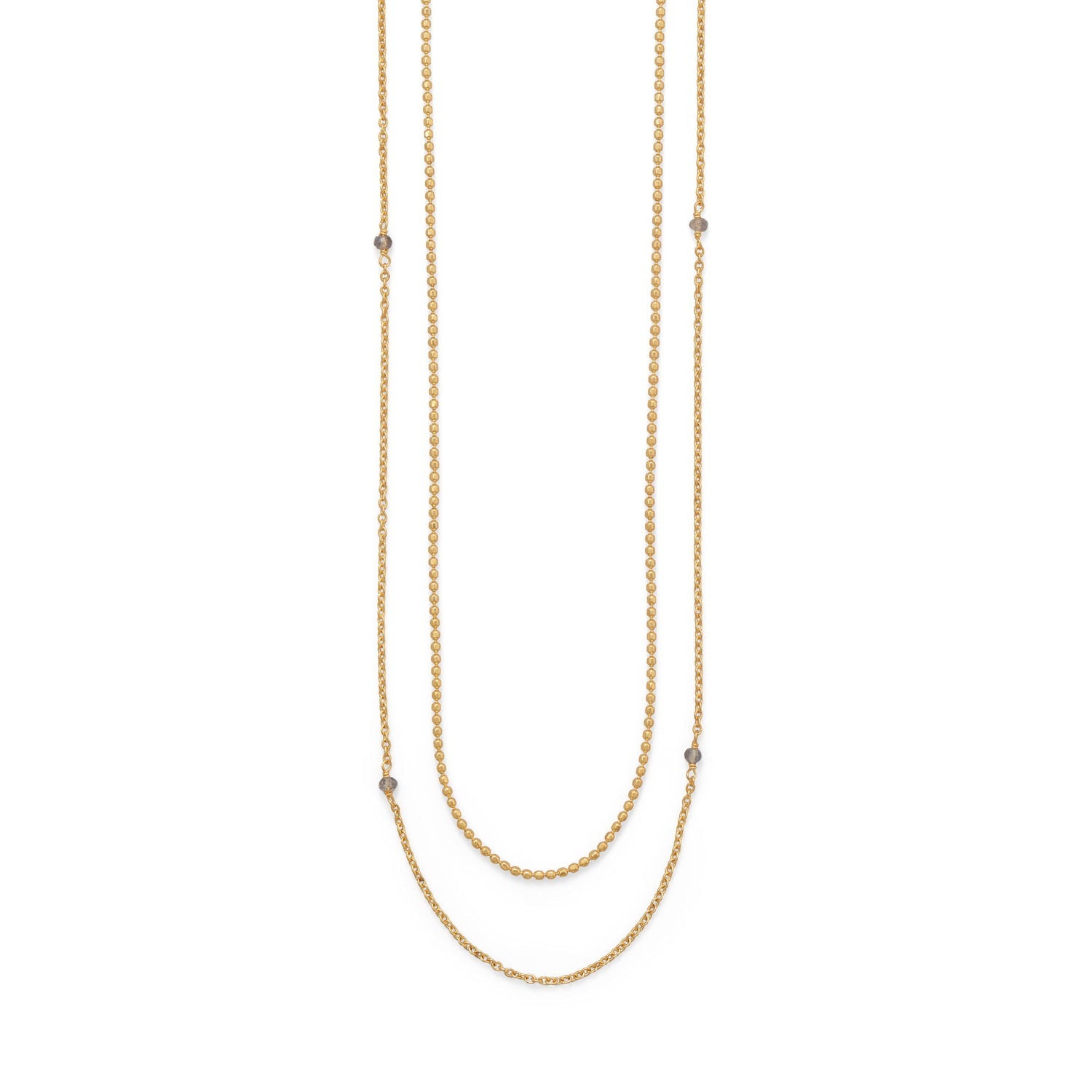 36" 14 Karat Gold Plated Two Strand Labradorite Necklace