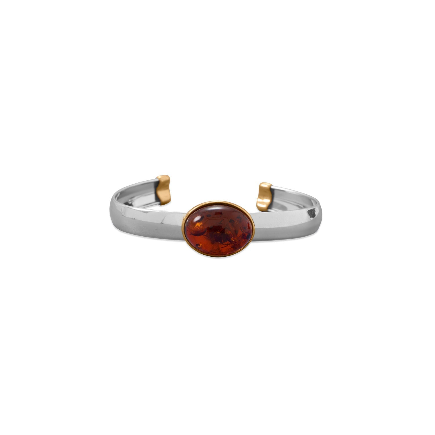 Decadent amber, making a comeback! Sterling silver flex cuff bracelet has 24 karat gold plated accents and a gorgeous15mm x 20mm genuine Baltic amber center. .925 Sterling Silver Genuine Baltic amber is from Poland