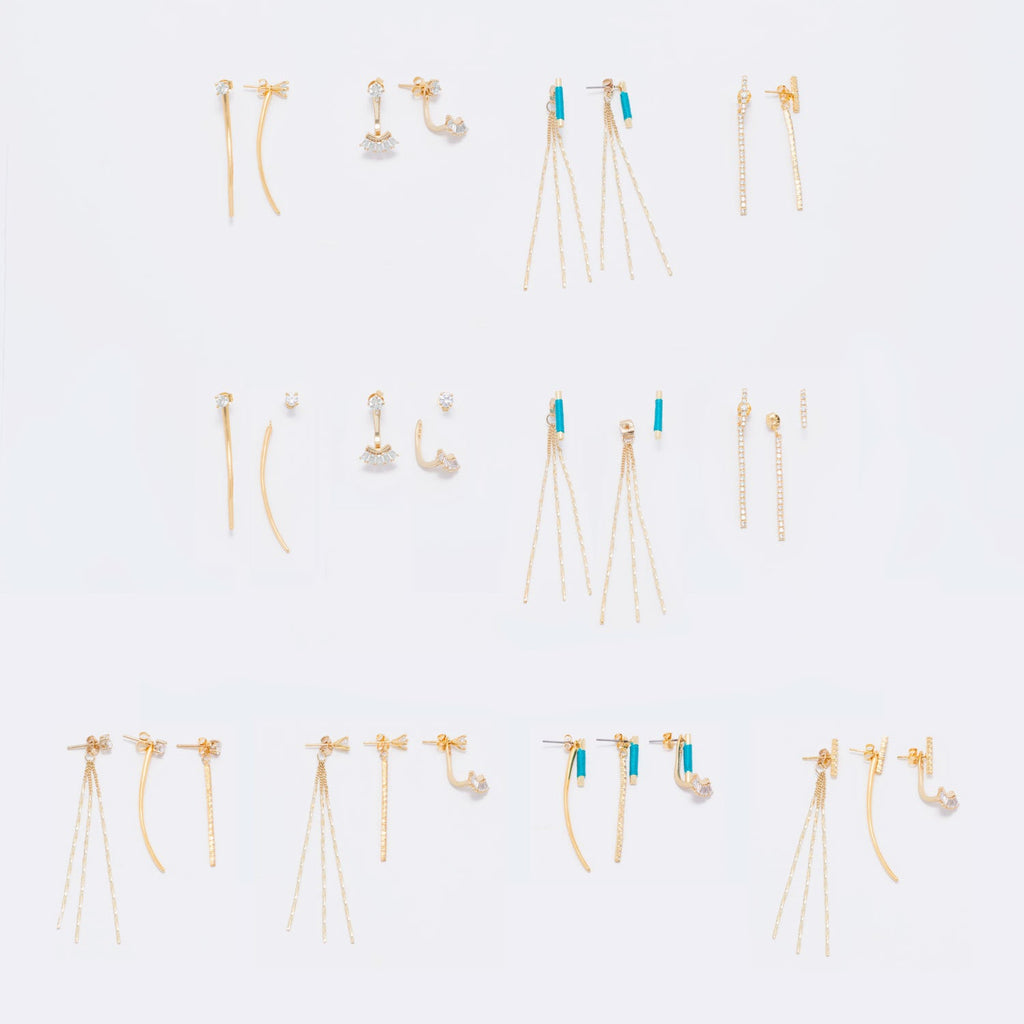 14 Karat Gold Plated Multishape CZ Front Back Earrings