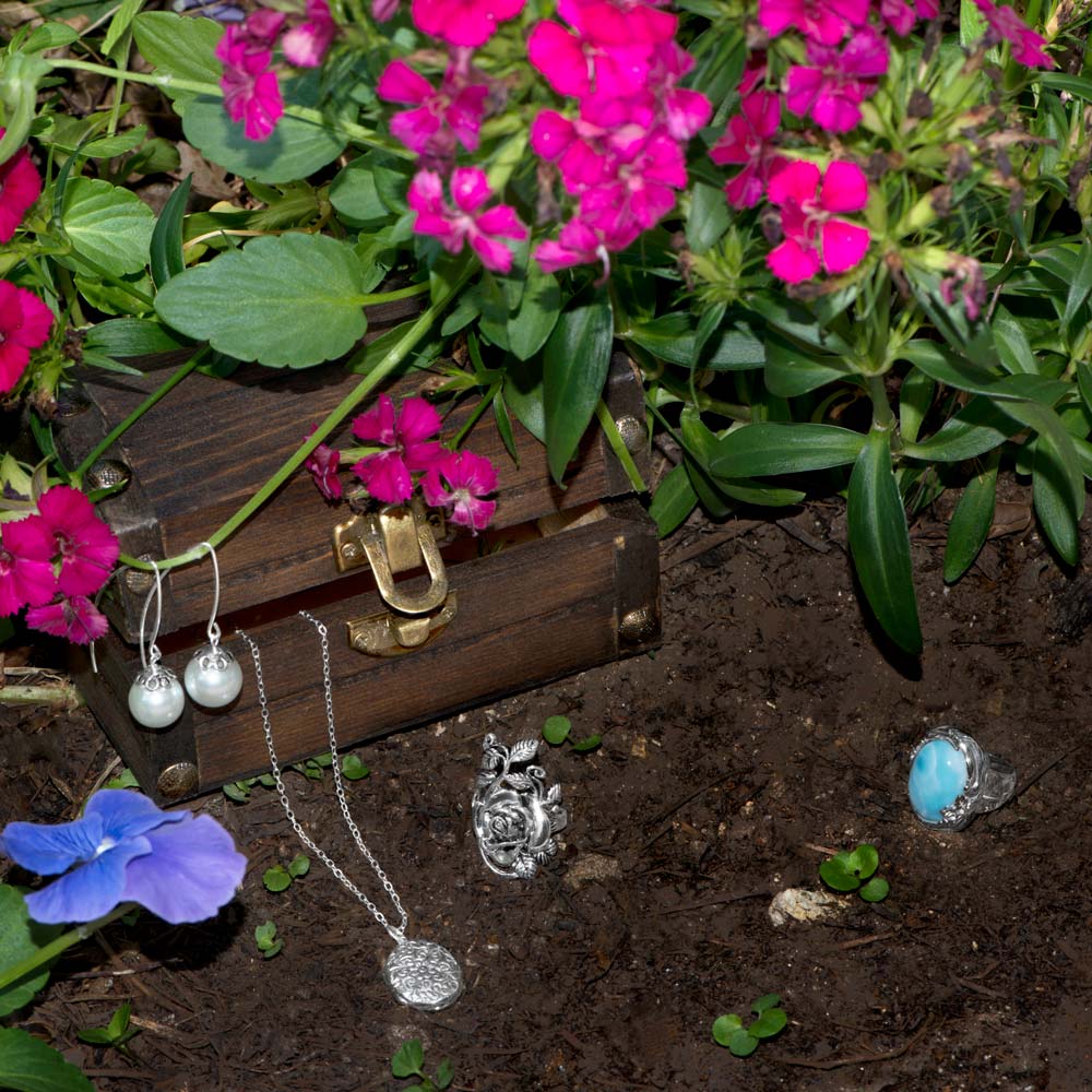 Sterling silver curved wire threader earrings featuring an 11.6mm glass pearl with ornate flower design cap. The earrings hang approximately 1.5" total. .925 Sterling Silver
