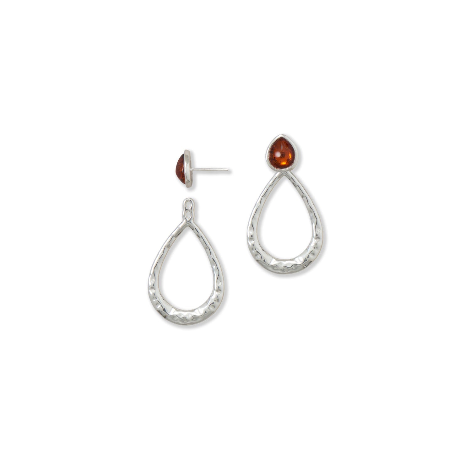 An irreplaceable piece of history. Sterling silver hammered pear drop hangs from 9mm x 7.5mm genuine Baltic amber post stud earring. Earrings have a total hanging length of 40.5mm. BONUS - These earrings can be worn alone as studs or with the hammered pear drops! .925 Sterling Silver
