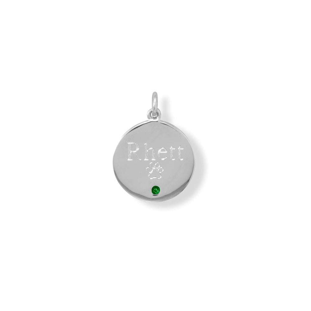Engravable Rhodium Plated CZ Pendant - May Birthstone