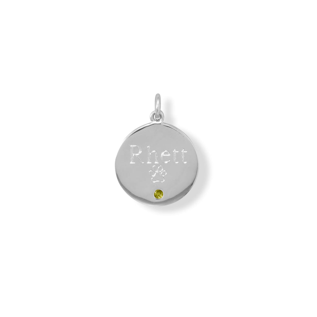 Rhodium plated sterling silver engravable pendant with 2.5mm yellow CZ. Pendant measures approximately 20mm. Learn more about engraving here. .925 Sterling Silver Customizing with a symbol? Please use code from symbol library to indicate placement of the symbol. Ex: Rose Jack = Rose (A1) Jack Note: Please allow up to five (5) business days for your personalized item to ship. If you prefer your non-engraved items be shipped immediately, please indicate that in the Order Notes at checkout; otherwise, your entire order will be held and shipped complete when engraving items are ready.